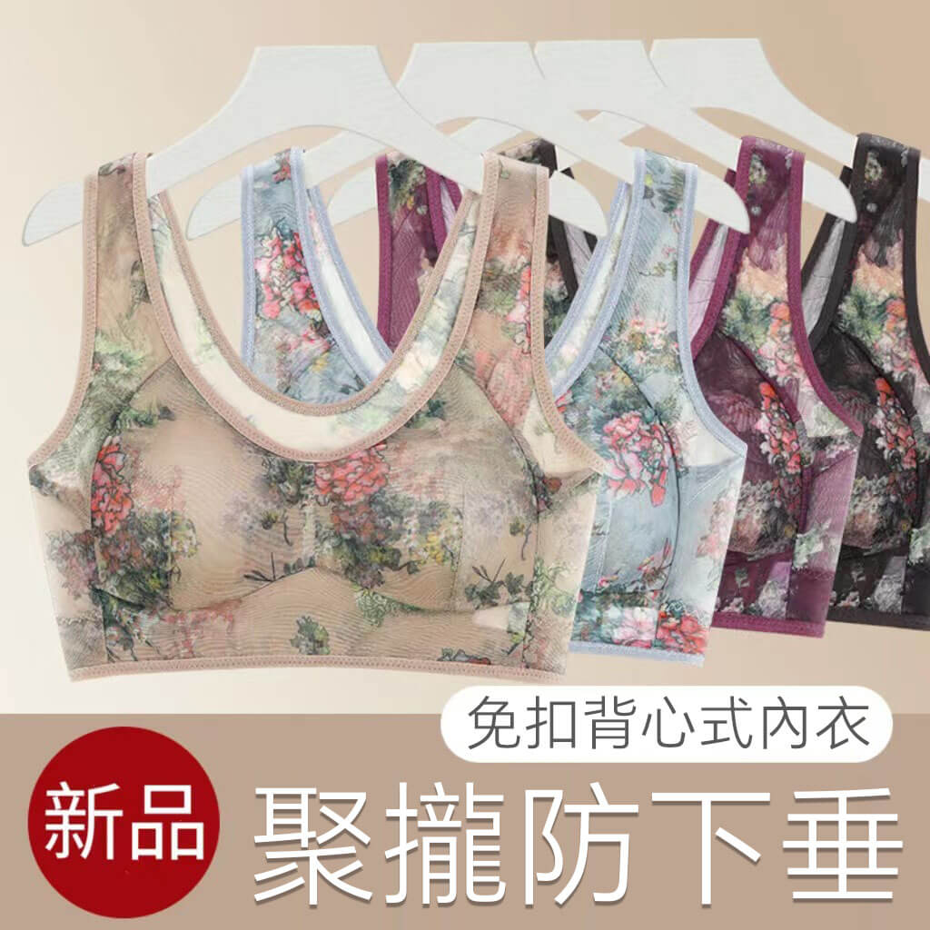 • 40-100公斤~中老年無痕内衣女文胸無鋼圈大胸顯小收副乳背心式睡眠文胸內衣 NT$1028 NT$2998 詳情