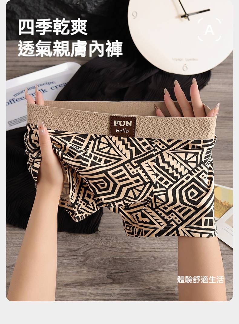 5分鐘前這款幾何風內褲真的帥呀!精梳棉布料搭配幾何圖案,上身潮流個性,親膚舒適~ - 買三送八,12條穿整年 NT$1498