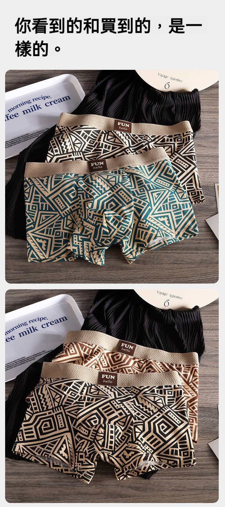 20分鐘前這款幾何風內褲真的帥呀!精梳棉布料搭配幾何圖案,上身潮流個性,親膚舒適~ - 買二送四,選擇六條 NT$998