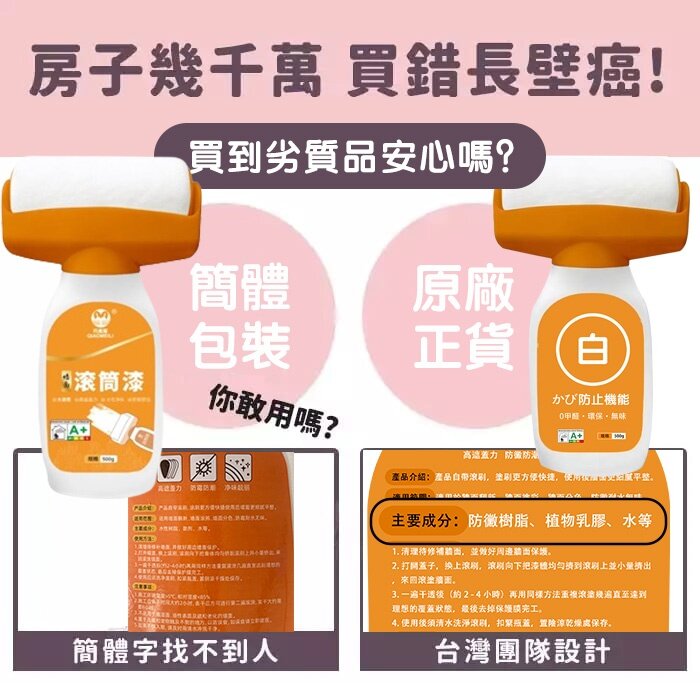 12分鐘前【週年慶鉅惠 福利無限!】防黴、修復,一刷即白,不流掛,台灣第二代納米碳酸鈣墻面小滾刷,簡單便捷,環保0甲醛,健康好生活 - 🎉週年慶鉅惠 整屋翻新3入組(買二送一 3瓶 )-NT$1298